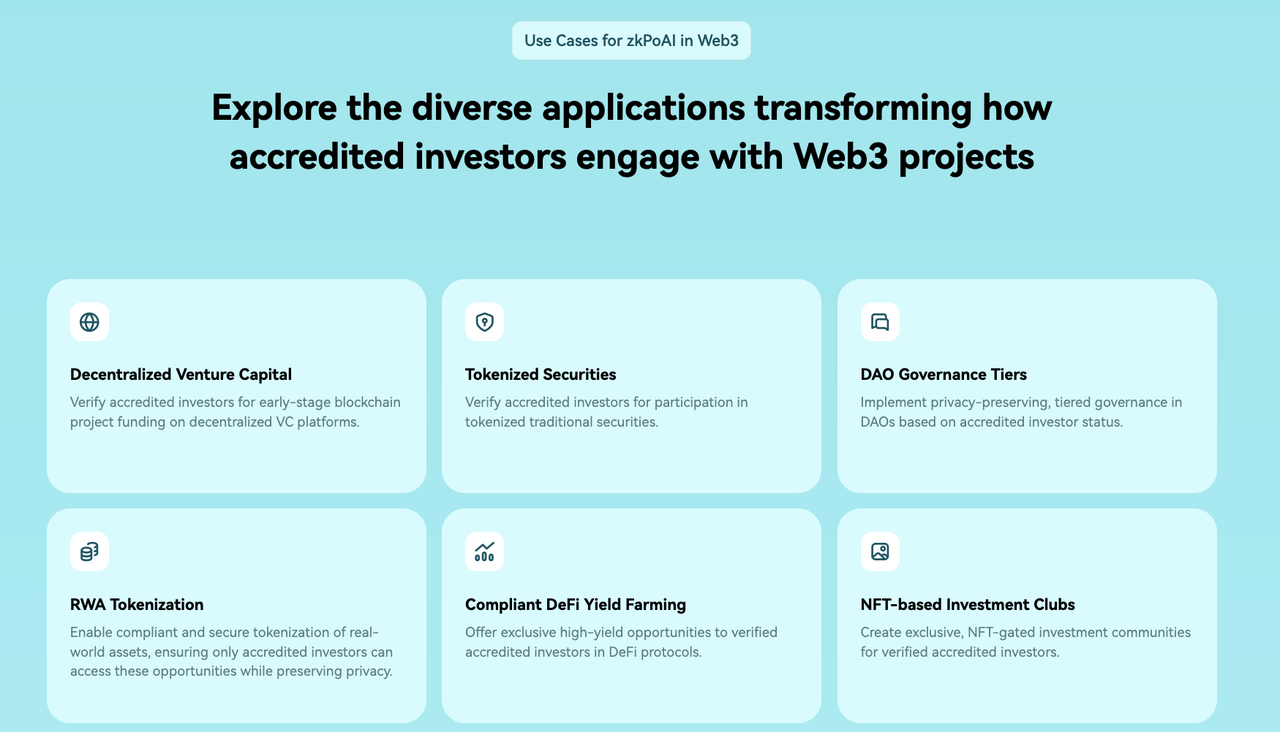 zkPoAI (Proof-of-Accredited-Investor) in our current campaign is designed to give you a taste of this groundbreaking technology. Think of it as a test drive for the future of investment verification—where your financial privacy is completely protected while still meeting all compliance requirements.This preview experience demonstrates: