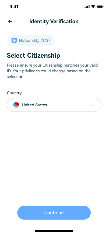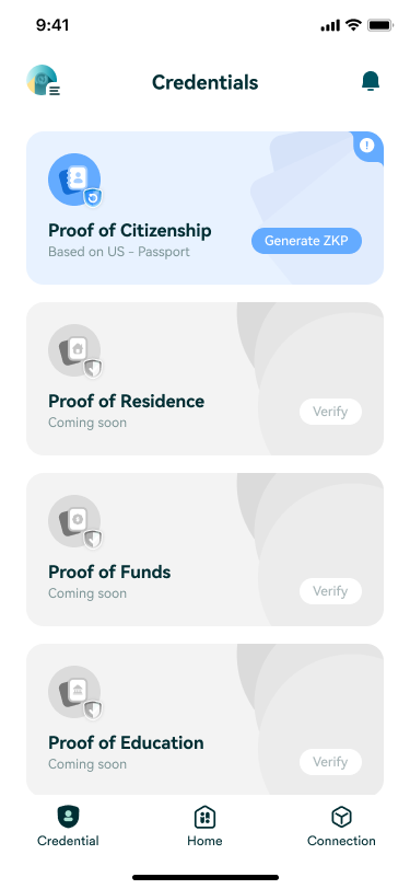 - Start Proof-of-Citizenship Verification (Further proofs will be accessible at a later stage).