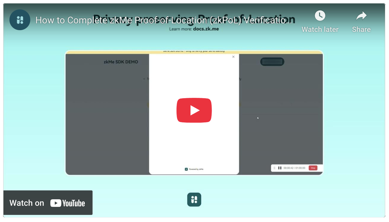 To help you get started with zkMe's Proof of Location, video guides are available here.